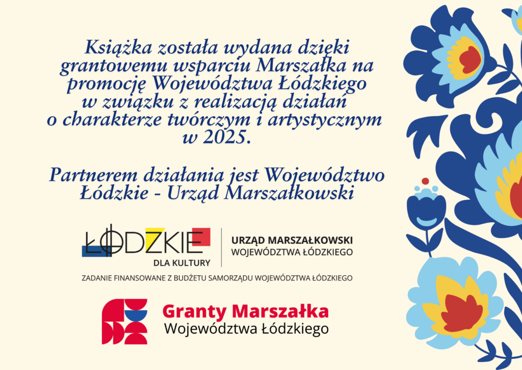 Publikacja książkowa mogła ukazać się dzięki Grantowi Marszałka na promocję Województwa Łódzkiego w związku z realizacją działań o charakterze twórczym i artystycznym w 2025.
